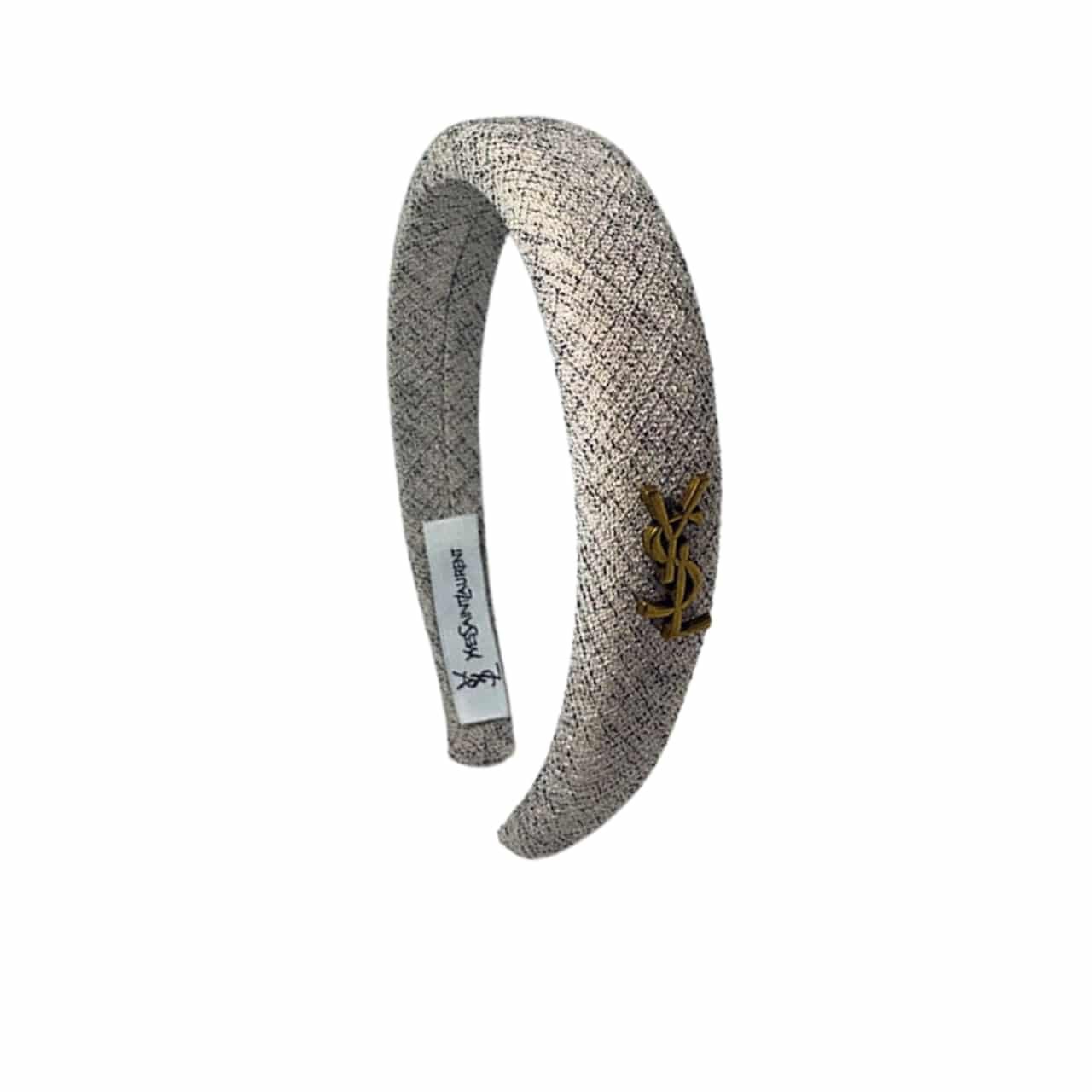 Be the first to review “Saint Laurent Ysl Tweed Headband With Gold Hardware In Salt And Pepper” Cancel reply