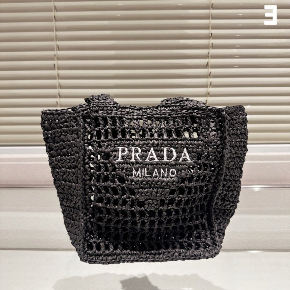 PRADA NATURAL RAFFIA LOGO TOTE BLACK 1BG444 2A2T F0002 18CM