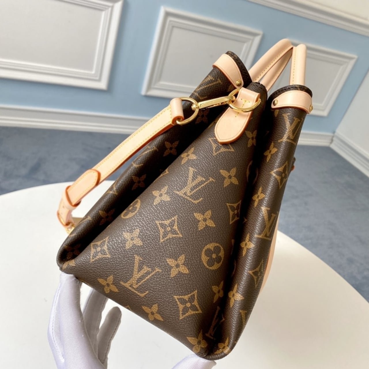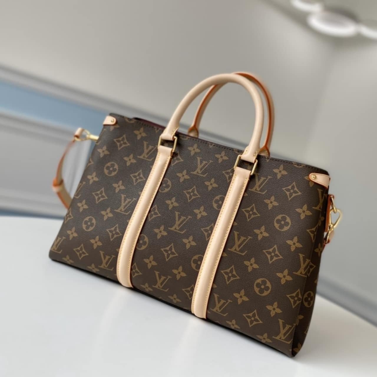 The Soufflot BB features classic Monogram canvas with structured lines and side bands for a modern twist. Its top handles and detachable strap offer multiple carry options. Elegant, compact, and ideal for everyday sophistication.
