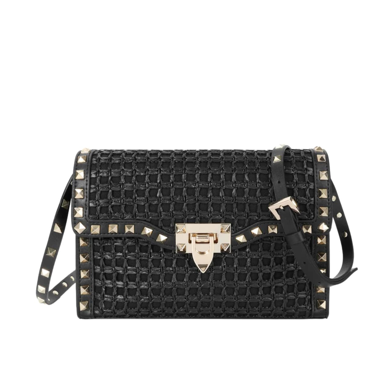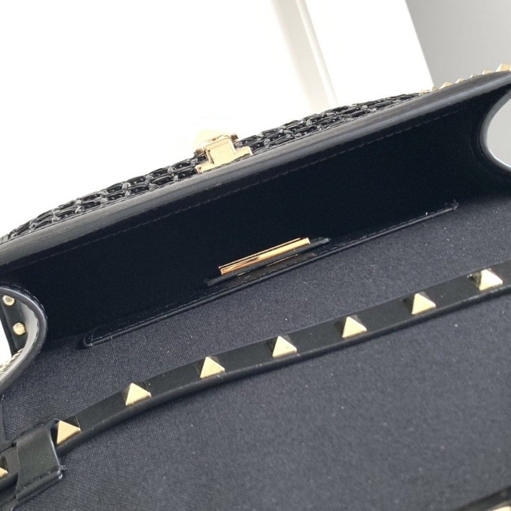 Be the first to review “Valentino Garavani Rockstud Small Raffia Shoulder Bag Black 22Cm” Cancel reply