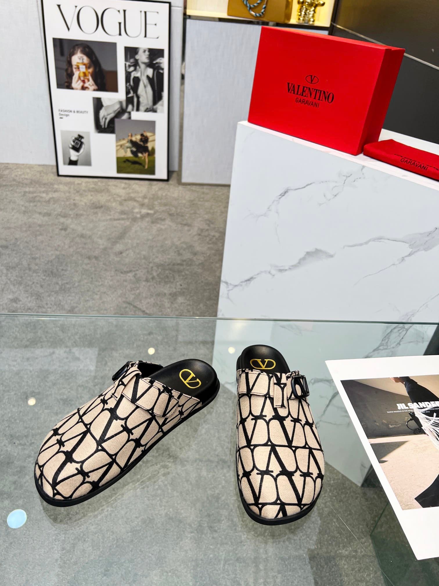 Valentino Garavani Toile Iconographe Vlogo Clog Beige Black 3Y2S0H14Sbt