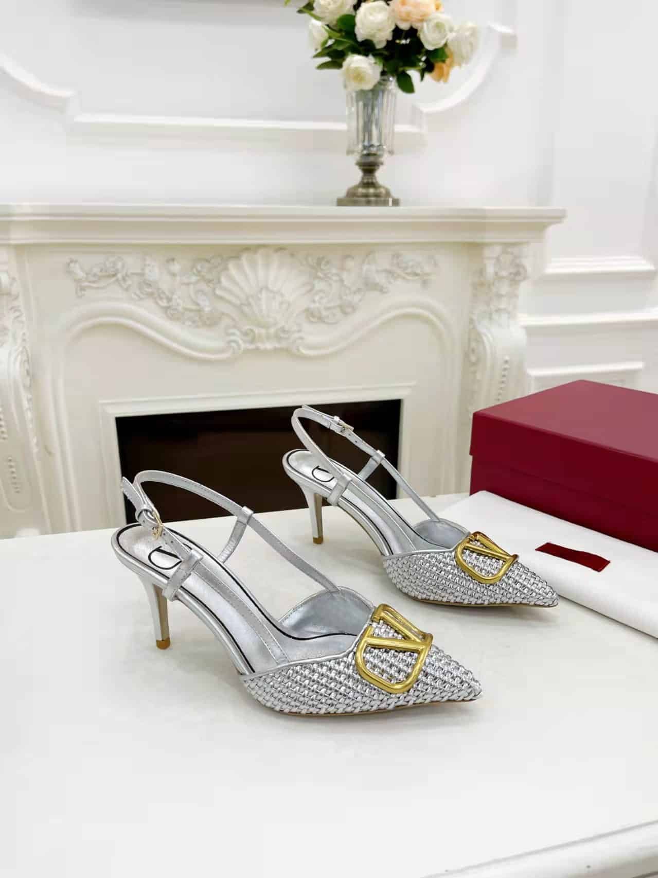 Be the first to review “Valentino Garavani Vlogo Woven Leather Slingback Pumps Silver” Cancel reply