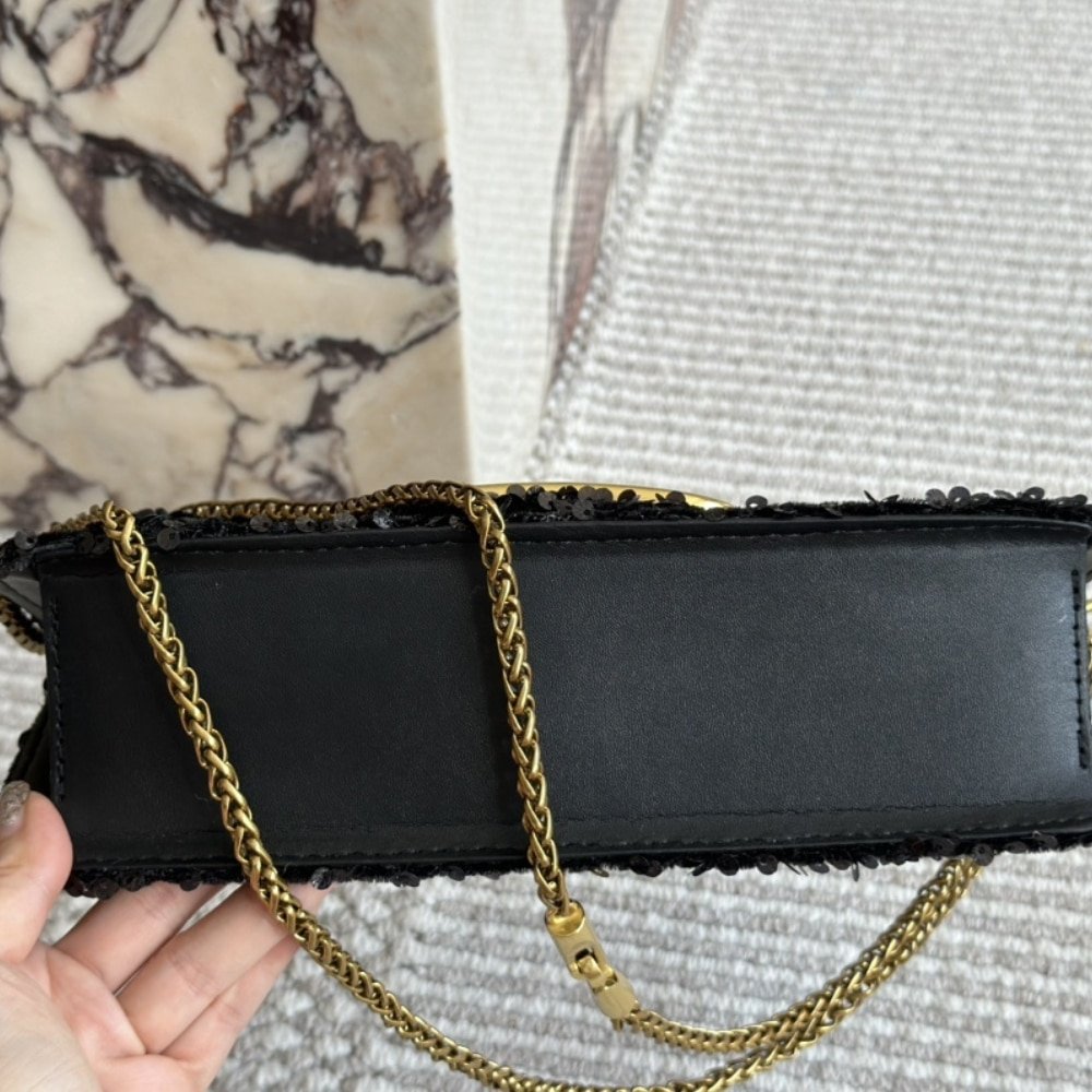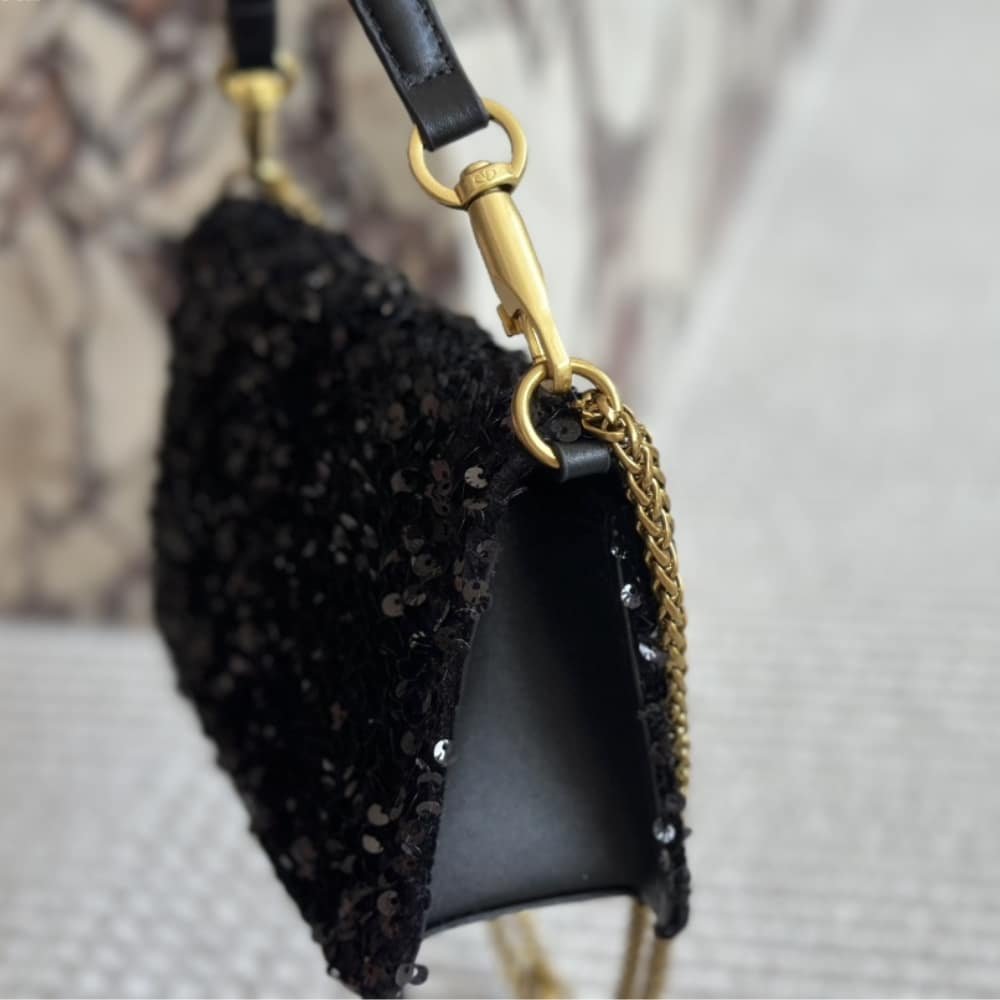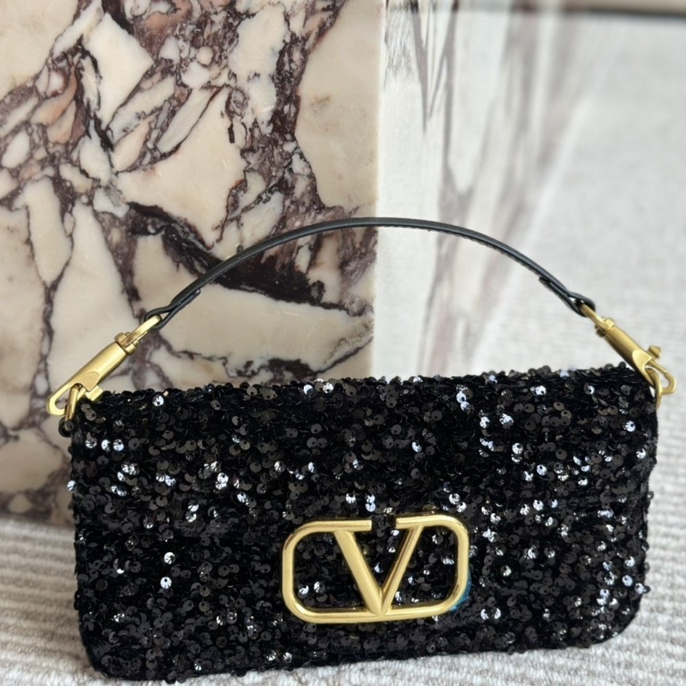 Valentino Loco Medium Vlogo Sequins Shoulder Bag Black 26Cm